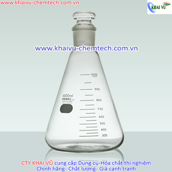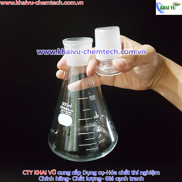 Tên: [HÃNG IWAKI - NHẬT] Bình tam giác chia vạch chịu nhiệt thủy tinh 100ml 250ml 500ml CÓ NÚT NHÁM KÈM THEO
